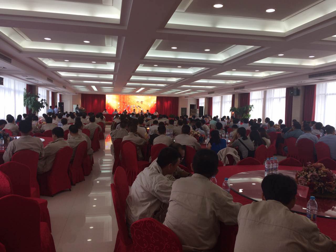 本次大會共有8個儀程,歡迎新員工、新員工自我介紹,老員工代表發(fā)言、表彰優(yōu)秀員工、優(yōu)秀員工代表發(fā)言、領導講話、董事長致辭、宴會及聯(lián)歡活動。整個活動持續(xù)6個小時,過程組織有序、員工參與踴躍,宴會在董事長的一首勵志歌曲《愛拼才會贏》中結束。