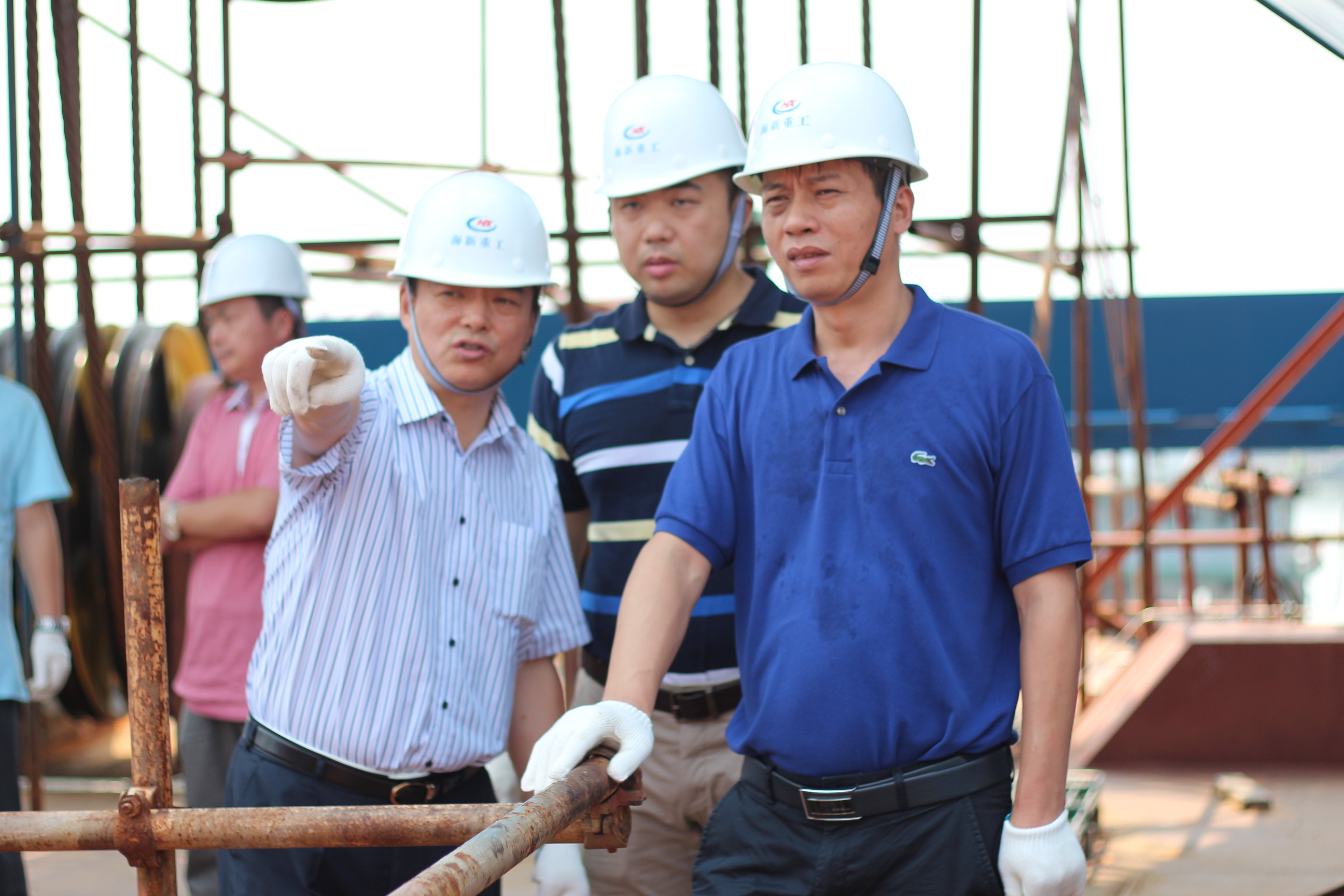 2017年08月11日上午,由中交疏??偛?、天津航道局、上海航道局、廣州航道局共計(jì)10名行業(yè)內(nèi)專(zhuān)家組成的專(zhuān)家團(tuán)一行來(lái)公司進(jìn)行了調(diào)研。孟咸宏董事長(zhǎng)親自介紹了海新重工的發(fā)展歷程、廠區(qū)設(shè)施、軟硬件的配備、辦公、生活環(huán)境,并向?qū)<覀冋故玖艘呀ǔ山桓兜漠a(chǎn)品以及在建船舶。海新重工專(zhuān)業(yè)的管理團(tuán)隊(duì)以及專(zhuān)業(yè)的施工隊(duì)伍都圍繞著孟總“建精品廠、造精品船”的理念,將“創(chuàng)造時(shí)代精品、鑄就民族品牌”落實(shí)到了日常的項(xiàng)目生產(chǎn)管理中去。