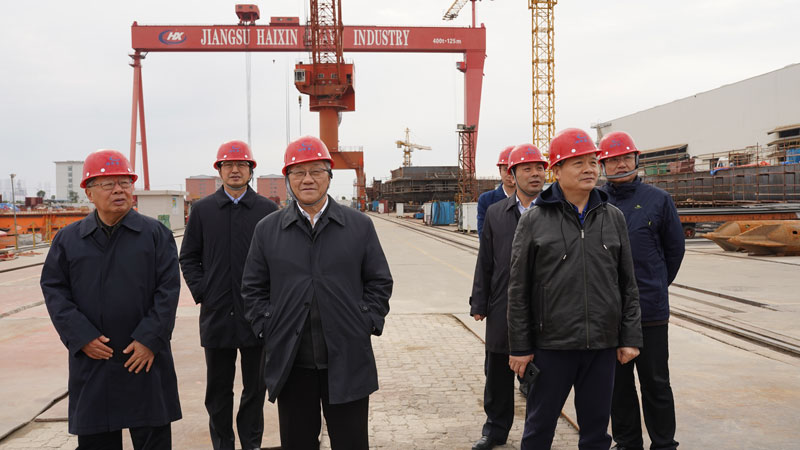 2019年3月22日,江蘇海新船務(wù)重工有限公司董事長(zhǎng)兼總經(jīng)理孟咸宏在海新碼頭會(huì)見(jiàn)了由原交通運(yùn)輸部部長(zhǎng)黃鎮(zhèn)東、原交通運(yùn)輸部部長(zhǎng)李盛霖率隊(duì)的調(diào)研團(tuán)一行,并陪同實(shí)地調(diào)研海新重工廠區(qū)及碼頭,參觀了即將赴沙特阿拉伯參與“一帶一路”建設(shè)的非自航絞吸疏浚裝備“新海旭”號(hào)。
