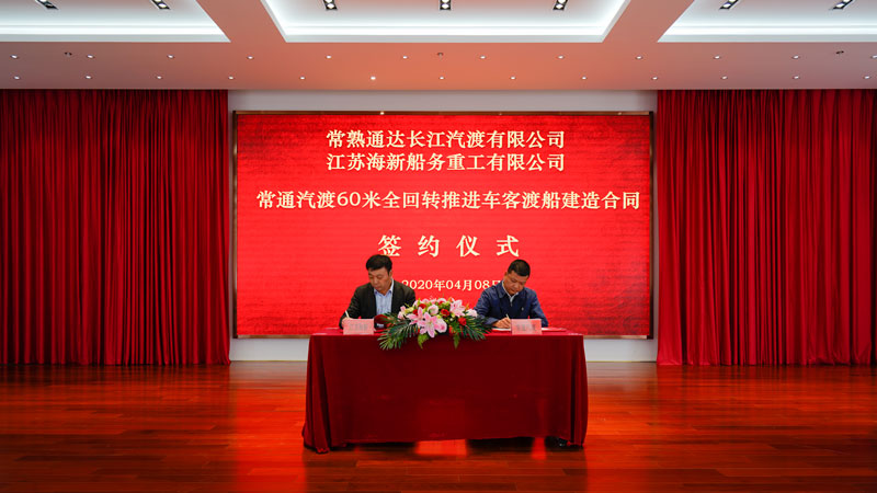 2020年04月08日上午,江蘇海新船務(wù)重工有限公司與常熟通達(dá)長江汽渡有限公司在海新公司七樓會議室舉行了60 米全回轉(zhuǎn)推進(jìn)車客渡船簽約儀式。